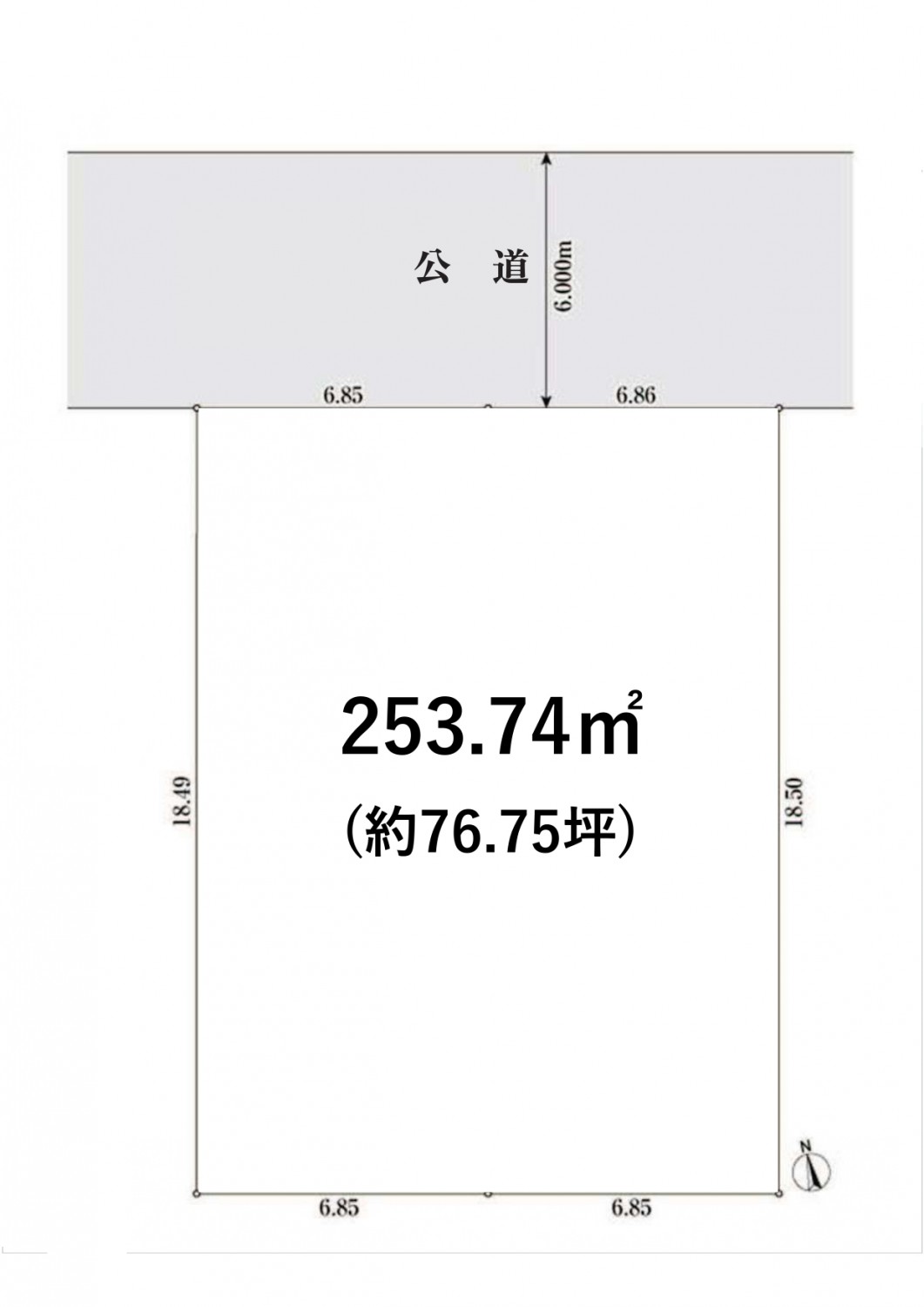 | 接道状況 | 一方道路 方位北 幅員6m 公道 接面13.7m 舗装あり | ||