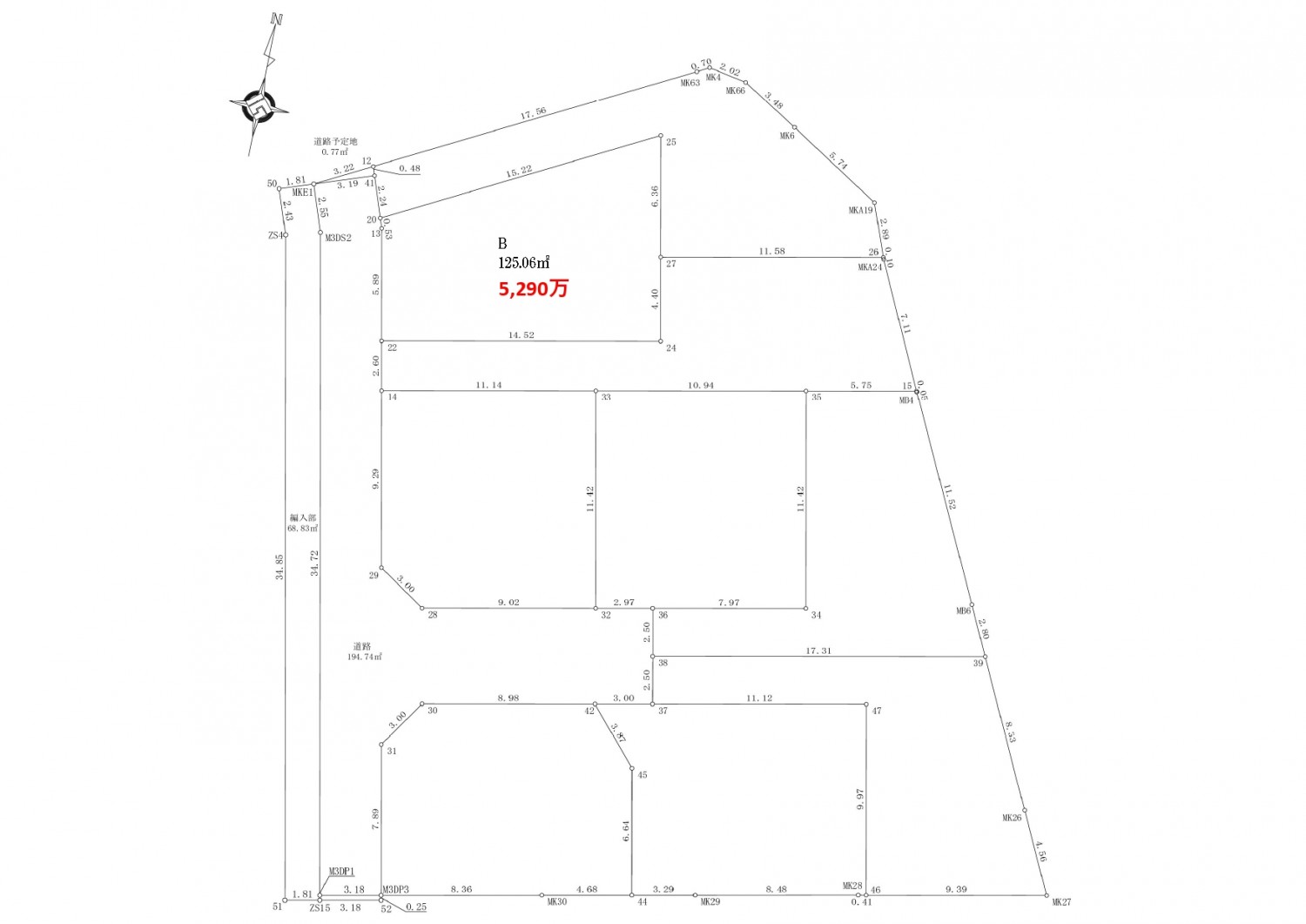 | 接道状況 | 一方道路 方位西 幅員5m 公道 接面6.4m 舗装あり | ||